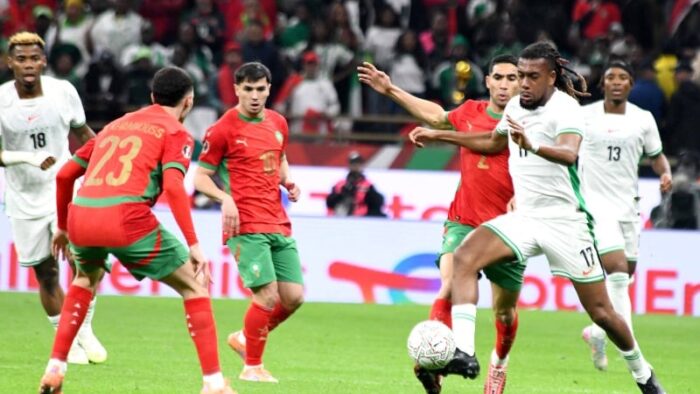 وشهد الشوط الأول ندية كبيرة وصراعًا تكتيكيًا محتدمًا، مع أفضلية نسبية لـ“أسود الأطلس” الذين حاولوا فرض إيقاعهم الهجومي، وخلقوا عدة فرص سانحة للتسجيل، أبرزها تسديدة إبراهيم دياز التي مرت محاذية للمرمى، وضربة حرة قوية لأشرف حكيمي جانبت القائم، إلى جانب محاولة لإسماعيل الصيباري تصدى لها الحارس النيجيري بنجاح.