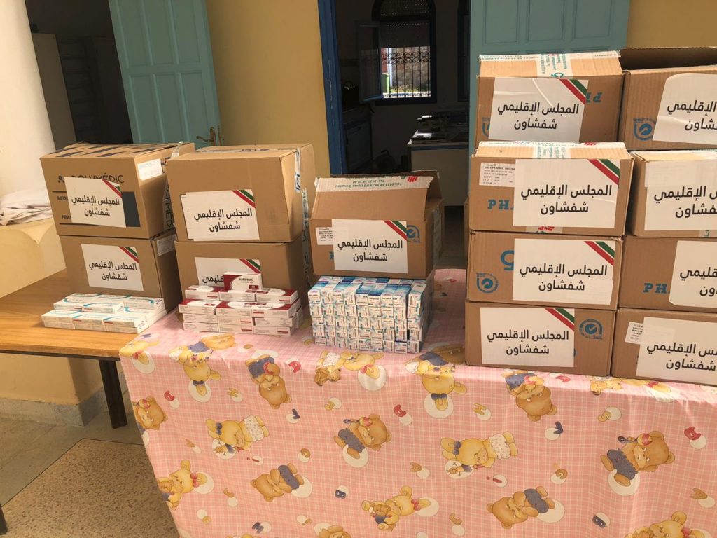 أشرف عامل إقليم شفشاون ورئيس المجلس الإقليمي عبدالرحيم بوعزة حفل تسليم الادوية للامراض النفسية والعقلية للمصلحة بتمويل من المجلس الإقليمي وباتفاقية لمدة ثلاث سنوات. 20 مليون سنتيم عن كل سنة وتعتبر هاته المبادرة الوحيدة في الجهة وبتعليمات من عامل الاقليم.
