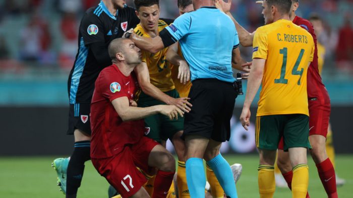 أشعل ذلك غضب جماهير أصحاب الارض ما أدى إلى نزول البعض منهم الى أرض الملعب لمهاجمة باييت، ما دفع الحكم الى توقيف اللقاء وإرسال اللاعبين الى غرف تبديل الملابس.سقط باييت أرضًا بعد أن أصابته إحدى الزجاجات قبل أن ينهض ويرميها نحو المدرجات.