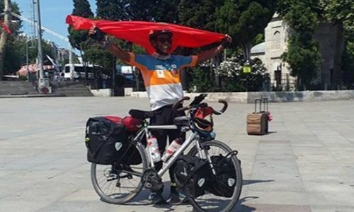 رحالة مغربي يواصل من السنغال رحلته عبر العالم على متن دراجة